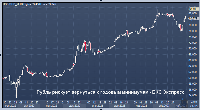 Не исключено, что курс рубля вновь опустится в области годовых минимумов по отношению к ведущим мировым валютам, предположил аналитик БКС Экспресс Дмитрий Бабин.