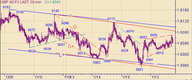 down-тренда 1.6115(14/01/03)-1.5953(15/01/03) − см. на рис. 3. Само движение происходит в пределах канала L-L+. Для движения наверх графика необходимо преодолеть линию L. Важные уровни: поддержка 1.5947 (текущее положение линии H на рис. 2); сопротивление 1.6100 (текущее положение линии L на рис. 3.Торговые тактики − вне рынка.