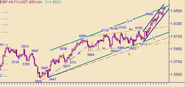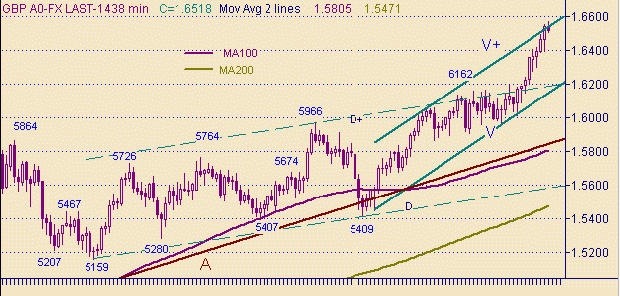 Вчера вечером рынок поднялся выше уровня 1.6500. "Отклонения" этой пары валют от канальности движения заставляют нас опять корректировать линии для обозначения роста курса − см. на рис. 3., где мы провели дополнительные линии