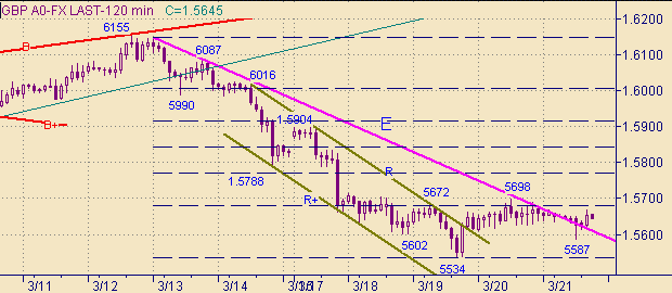 E на рис. 3. При этом свечи с периодом 120 мин. не смогди закрыться выше уровня коррекции 23.6%, равный 1.5678, от нисходящего движения ниже линии E на рис. 3. Важные уровни: поддержка 1.5535, сопротивление 1.5700. Торговые тактики. Рассматривать постановку покупок в случае пробития уровня 1.5700, цель для покупок на 1.5840Поддержка: 1.5580, 1.5535, 1.5460, 1.5410, 1.5