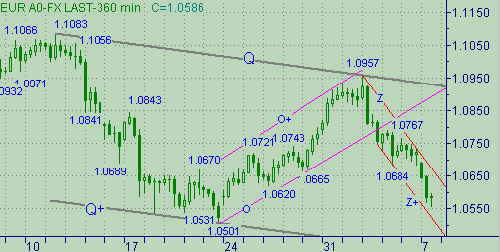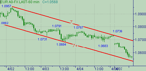 0684, Close= 1.0725.На рис. 1, 2, 3 и 4 приведены графики с периодами день(линейный график), день, 360мин., 60мин.