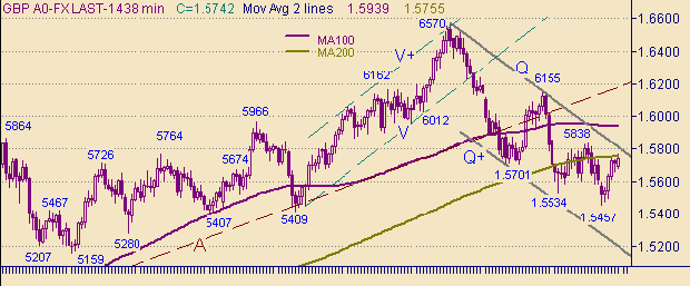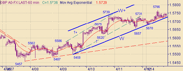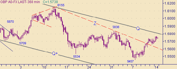 W-W+. Сейчас рынок пытается опуститься ниже линии W. В случае опускания курса ниже этой линии будем считать движение 1.5657-1.5766 как часть коррекции от up_тренда 1.5498(9/04/03)-1.5739(10/04/03). В случае опускания курса ниже линии W откладываются попытки штурма линии Q на рис. 2. Текущее положение линии Q соответствует значению курса 1.5817. Фунт/доллар будут искать новую поддержку для формирования up-движения. Такой поддержкой может стать уровень 1.5630.Торговые тактики. В случае опускания курса до уровня 1.5540 рассматривать постановку продаж, стоп-лосс ниже 1.5585, цель 1.5870.