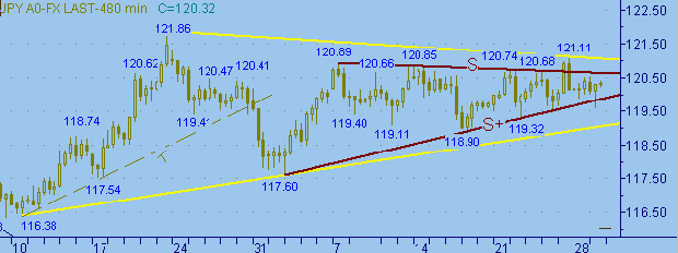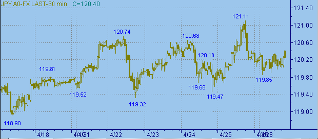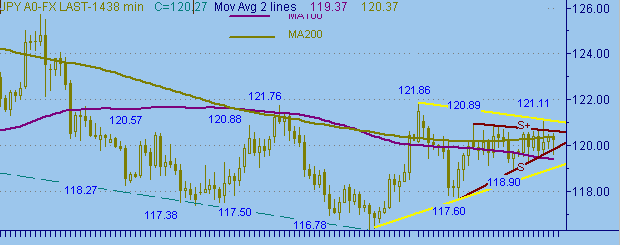Параметры последнего торгового дня: Open=120.18, High=120.48, Low=119.85, Close= 120.40.