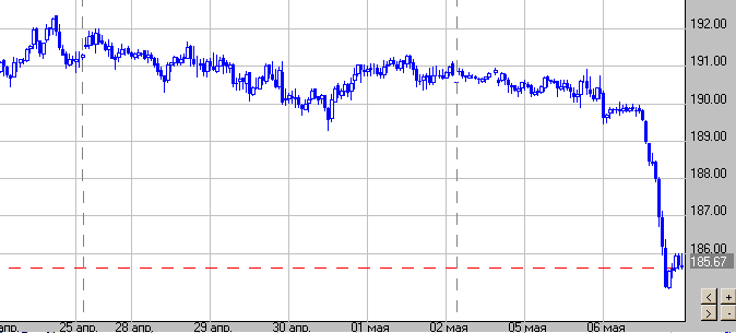 Однако, наибольшу активность сегодня проявили игроки, работающие с йеной. В Японии завершилась семидневная "золотая неделя" и ряды трейдеров пополнились местными представителями. Йена выросла сегодня не только по отношению к стерлингу, но и к евро, доллару США, доллару Канады, доллару Австралии. Причем, по словам дилеров, основной объем продаж пришелся на стерлинг, пару просто продавили, в результате чего был пробит многолетний восходящий канал. Продажи фунта к йене шли на протяжение всего дня. После такой "раскрутки" многие короткие позиции в йене были ликвидированы по стоп-приказам. Фунт/йена упал сегодня на рекордные 5 фигур. Не менее масштабно пострадал и евро/йена, остави позади 240 пунктов. Дилеры указывают на цели в доллар/йене на уровне Y110 и $ 107. Это вполне логично после сегодняшнего решительного шага к прорыву многолетней восходящей линии тренда с 1995 года в этой паре. "Следующий главный уровень, который будут атаковать медведи - 115.80, и я думаю, что, поскольку мы двигаемся к тому уровню, риск вмешательства Банка Японии мог стать более острым", - отметил Алекс Бузелин, аналитик валютного рынка Ruesch International в Вашингтоне. Не исключено, что у кого-то из игроков есть инсайдерская информация о планах Банка Англии на завтрашнее заседание и планах Банка Японии по вопросу интервенций. Возможно, также, что начались продажи взятых в займ долларов в преддверие купонных выплат по облигациям США 15 мая.