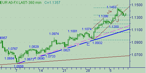 J на рис. 3.Торговые тактики. Продолжаем держать позиции на покупку, стоп-лосс ниже 1.1280, цель 1.1520. В случае тестирования с низу ценой линии