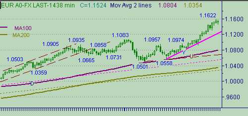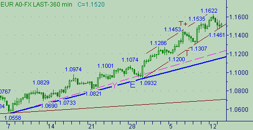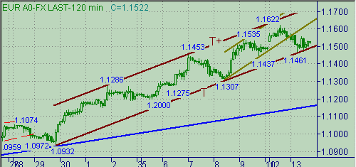 1493 High=1.1622, Low=1.1493, Close= 1.1541.На рис. 1, 2, 3 и 4 приведены графики с периодами неделя, день, 360мин., 120мин.