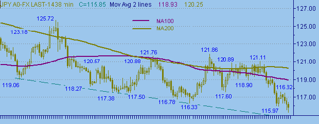 Параметры последнего торгового дня: Open=116.59, High=116.85, Low=115.55, Close= 116.17.