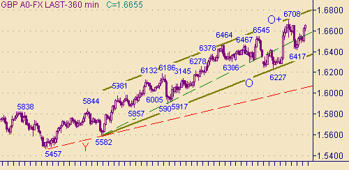 L-L+ на "импульсность".Торговые тактики. Позиции на покупку более симпатичные. Покупки открывать при выходе цены выше 1.6710 или в случае тестирования уровня 1.6550. При открытии позиции от 1.6550 стоп-лосс ставить ниже 1.6500, цель − 1.6700.