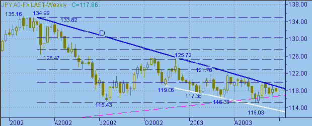 Доллар/йена за прошлую неделю не смогли подняться выше линии