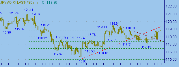 8.10, High=118.71, Low=117.70, Close= 117.79.На рис. 1, 2, 3 и 4 приведены графики с периодами неделя, день, 480мин., 60мин.