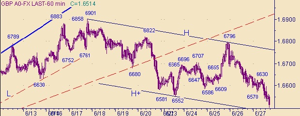 Параметры последнего торгового дня: Open=1.6718, High=1.6760, Low=1.6591, Close= 1.6606.