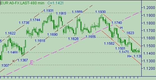1577 High=1.1623, Low=1.1399, Close= 1.1424.На рис. 1, 2 и 3 приведены графики с периодами день, 480мин., 60мин.
