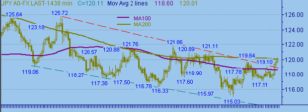Параметры последнего торгового дня: Open=119.37, High=120.06, Low=119.14, Close= 119.67.