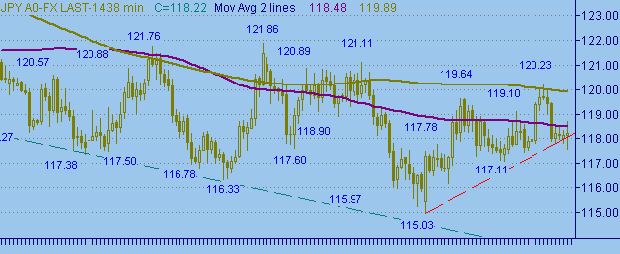 Параметры последнего торгового дня: Open=118.00, High=118.32, Low=117.81, Close= 118.12.