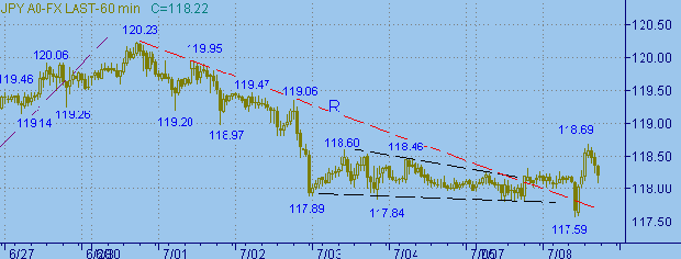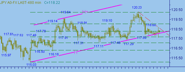 H на рис. 2. На сегодня ключевой уровень сопротивления − 118.60. Закрытие дня выше этого уровня восстановит оптимизм быков и обозначит очередное движение к попытке закрепиться выше 120.00. Закрытие дня ниже 118.00 возвестит нам о пробитие линии H на рис. 2, а так же "поднимет" настроение медведей для похода в область 116.20-116.70.Торговые тактики. В случае закрытия часа выше 118.60 рассматривать постановку покупок, стоп-лосс − ниже 118.30, цель − 120.00.