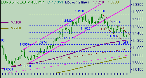 Вчерашний минимум не смог опуститься ниже 1.1250. Сейчас рынок пытается подняться выше 1.1350 с перспективой тестирования линий O и R на рис. 2 и 3. Текущее положение линий O (на рис. 2) и R (на рис. 3) соответствуют ценам 1.1440 и 1.1399. Через уровень 1.1400 проходит линия шеи для фигуры Голова-Плечи (на дневных графиках). В случае закрепления курса выше интервала цен 1.1370-1.1400 у евро/доллар появляются хорошие технические шансы для тестирования области 1.1560. Область цен 1.1560 на сегодня является ключевой, т.к. в случае закрытия дня выше этой цены рынок "технически" обозначит свои намерения к очередному походу в район 1.1930.Торговые планы не изменились. При подходе к 1.1370 позиции на покупку можно закрывать. В случае подхода к 1.1400 открывать продажи, стоп-лосс − выше 1.1475, цель − 1.1085. В случае закрытия свечи с периодом 240мин. выше 1.1375 отменяются позиции на продажу и рассматривать постановку покупок с целью до 1.1580. В случае закрытия свечи с периодом 240мин. выше линии