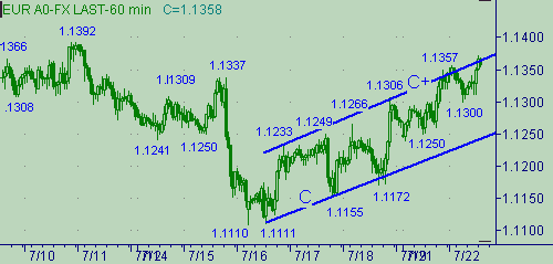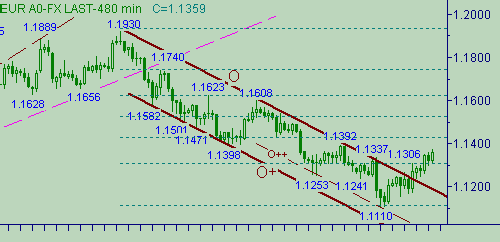 C-C+ на рис. 3 сохраняется. Сегодня рынок подошел в своему важному уровню сопротивления − уровню 1.1365. Закрытие дня выше этого уровня обозначит нам подтверждающие технические сигналы на формирование рынком нового up-тренда. Следующим ключевым уровнем сопротивления можно рассматривать ценовой интервал 1.1390-1.1420, который могут использовать медведи для формирования локальных нисходящих down-движений до уровня 1.1365.Важная поддержка