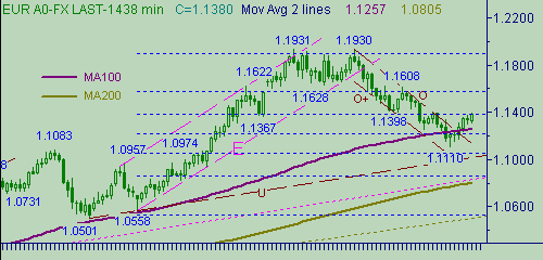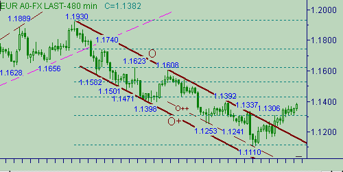 и 3 приведены графики с периодами день, 480мин., 60мин.Сегодня рынок вплотную подошел к попытки решения проблемы "интервала 1.1390-1.1420". Сегодняшний максимум составил 1.1390. В целом ситуация не изменилась. Вчерашний день не привнес нам сильного бычьего технического сигнала. Сегодняшний день имеет все шансы это сделать.