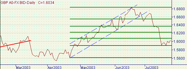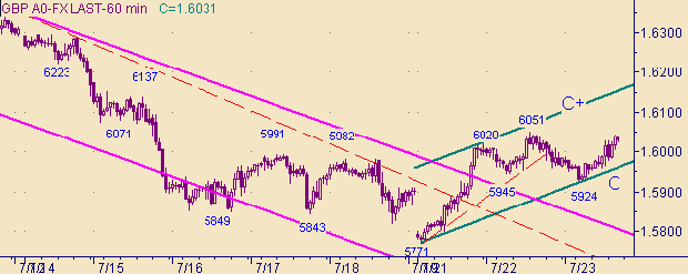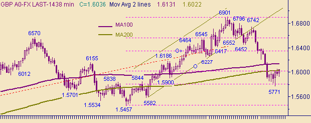 Сегодняшний день можно назвать как противостояние быков и медведей. С одной стороны сегодняшний минимум, равный 1.5924, "сорвал" стоп-лоссы расположенные ниже 1.5945. С другой стороны и быки не могут пока подняться и закрепиться выше 1.6050. Направление выхода из интервала 1.5924-1.6050 и покажет победителя этого противостояния.