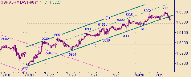 C на рис. 3. Сейчас рынок в рамках коррекции от роста курса 1.5771(21/07/03)-1.6309(29/07/03) пытается пробиться ниже интервала 1.6185-1.6200. В случае, если рынок сможет закрепиться ниже 1.6185 у него появятся перспективы для движения до 1.6050.На сегодня важные уровни: поддержка − 1.6185; сопротивление − 1.6260.