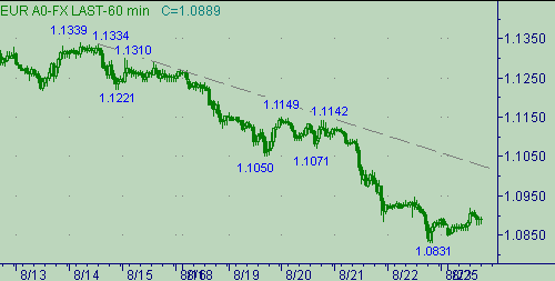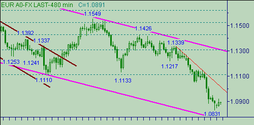 0919, High=1.0946, Low=1.0831, Close= 1.0886.На рис. 1, 2 и 3 приведены графики с периодами день, 480мин., 60мин.
