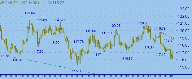 6.74, High=116.81, Low=116.32, Close= 116.55.На рис. 1, 2 и 3 приведены графики с периодами день, 480мин., час