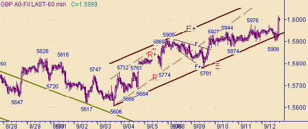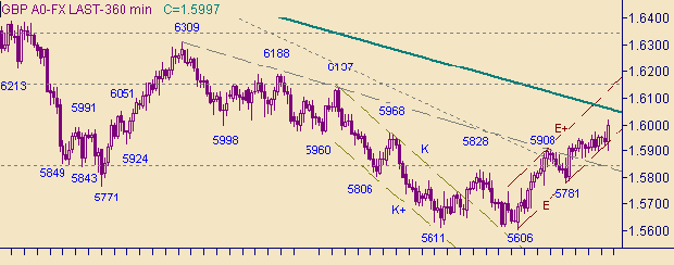 Фунт/доллар нас совсем запутали. Сегодня обозначили пробитие линии E на рис. 3, а затем фунт стал укрепляться. В более крупном масштабе, например на графиках с периодом 480мин. на рис. 2, линия