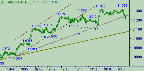 60мин., неделя(полулогарифмический масштаб).Сегодня мы наблюдаем эффект "неопределенности" или "не однозначности", связанный с тем что, как мы уже писали ранее, линию