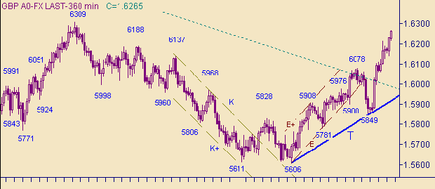 Рост курса фунта продолжается. Технически фунт/доллар близки к состоянию "технической перекупленности" почти на всех внутри-дневных графиках. Только на графиках с периодом день есть ещё резерв для движения на рост фунта, да и этот резерв не очень то и большой.