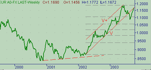 V, проведенную по ценам закрытия. Сколько этих целей было? сколько ещё будет.. не счесть. Но всё-таки отметим важность события текущего дня - не каждый день рынок тестирует линию пускай даже бывшего тренда, но длительностью более года. Текущее положение линии V на рис. 4 соответствует значению цены 1.1675.Сегодняшний максимум равен 1.1772. Очередные технические цели достигнуты, ясности больше не стало. В качестве важных уровней поддержки рассматриваем уровни: 1.1640, 1.1535, 1.1360. Уровень 1.1535 можно использовать для закрытия долгосрочных позиций на покупку −