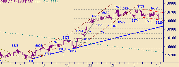Сегодня фунт/доллар повторили свой октябрьский минимум, равный 1.6529.Этот минимум почти соответствует фибе 76.4% от роста курса 1.6447(29/09/03)-1.6778(7/10/03) − см. на рис. 3. Нисходящее движение в рамках канала