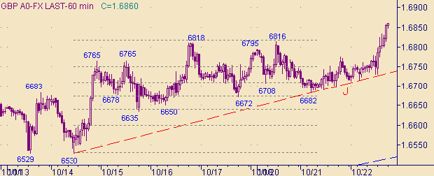 Фунт/доллар приближаются к своему важному уровню − уровню 1.6880. При подходе к этому уровню ожидаем технического отката вниз по графику.