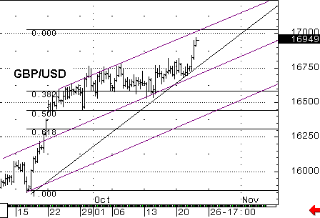 Комментарий. Стерлинг пробил исторические максимумы в среду и достиг новых. Эта бычья сила должна распространиться на следующую неделю. Имеется незначительный пик -1.7020, который мы достигнем в течение двух дней. После этого фунт должен упасть, чтобы собраться силами перед новым рывком в конец следующей недели к 1.7200. После достижения этого пика фунт должен отступить на неделю-две. Поддержка - 1.6860 - должна удержаться в четверг. Только после закрытия ниже этого уровня фунт может резко упасть к 1.6750. Эта отрицательная перспектива очень маловероятна, поскольку фунт имеет сильный восходящий импульс