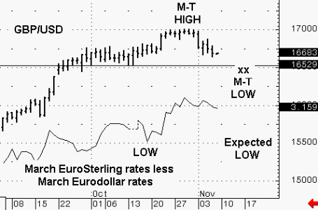 Хотя Банк Англии поднял ставки в четверг, решение не оказало воздействия, которого некоторые боялись ранее. Банк обращался с рынком весьма любезно, согласно комментариям, которые мы слышали. Фактически, фьючерсные контракты на фунт и евро с поставкой в марте 2004 достигли максимума больше чем неделю назад и вчера лишь продолжали снижаться, так что решение банка не оказало влияние на этот процесс. Поскольку экономика США - самая быстрая из всех ведущих, а проблема текущего счета остается, евродолларовые контракты - особенно с более отдаленной датой экспирации - должны быть гораздо более слабыми, чем стерлинговые контракты. Это должно помочь GBP/USD найти основание. Процентный дифференциал вокруг 3.00 % в пользу фунта сохранится в ближайшее время, так что маловероятно, что GBP/USD понизится слишком сильно. Наша цель - этот уровень 1.6550, и он мог бы быть достигнут уже в первой половине следующей недели. После этого два дня должны принести GBP/USD прибыль, и он мог бы подняться до 1.6765