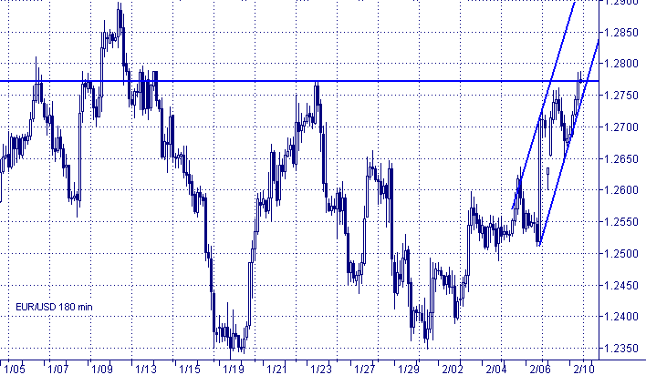 Евро пробил уровень разворотного максимума на $ 1.2770 и в настоящее время пытается закрепиться выше него. Если ему это удастся, уровень превратится в поддержку. Следующей целью в этом случае, безусловно, станет, уровень непревзойденных максимумов в районе $ 1.29, откуда не далеко и до психологического сопротивления на $ 1.30. Дневные графики остаются благосклонными к евро: симметричный треугольник пробит и быки движутся в направлении спроецированной по данной модели цели на $ 1.3050.