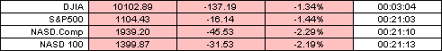 Акции Delta Air Lines упали на 14.6% до 7.55, после того, как компания сообщила о том, что ожидает снижения доходов в первом квартале по сравнению с ожидаемым, вследствие уменьшения пассажирских доходов и увеличением цен на топливо. При этом компания Roxio Inc. стала чуть ли не единственным светлым пятном в сегодняшнем торговом дне. Ее акции подпрыгнули на 22.7% до 5.25 после сообщения о повышении доходов в первой финансовой четверти этого года в результате увеличения потребительского спроса на программную продукцию компании. В одном ряду с Roxio Inc. можно поставить InVision Technologies Inc., акции которой совершили ралли и поднялись на 19.7% благодаря тому, что General Electric согласилась покупать детектированные бомбы в объеме приблизительно 50% от общего объема производства компании. Среди компаний индекса Dow, акции United Technologies Corp. стали, чуть ли не единственными, сумевшими подняться выше. Deutsche Bank повысил рейтинг акции компании до "покупать", что способствовало их увеличению на 1.2 доллара за акцию до 88.55.