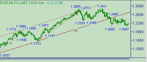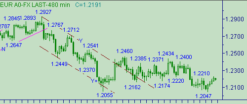 Параметры последнего торгового дня Open=1.2124, High=1.2169, Low=1.2047, Close= 1.2140.