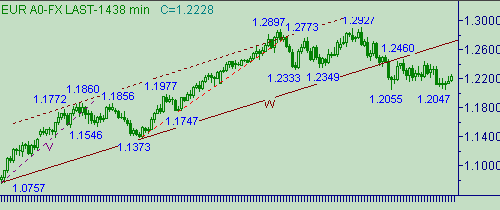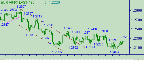 Параметры последнего торгового дня Open=1.2141, High=1.2228, Low=1.2141, Close= 1.2169.