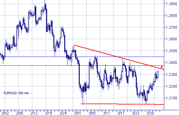 Евро приближается к верхней границы "медвежьего треугольника" и линии основания модели "двойное дно". Само наличие этих дух противоположных моделей делает техническую картину неопределенной в рамках широкого среднесрочного горизонтального диапазона. С учетом того, что завтра ожидается ключевое событий недели, мы находим привлекательной возможность продажи от области $ 1.24. Стоп можно разместить в районе $ 1.2460.