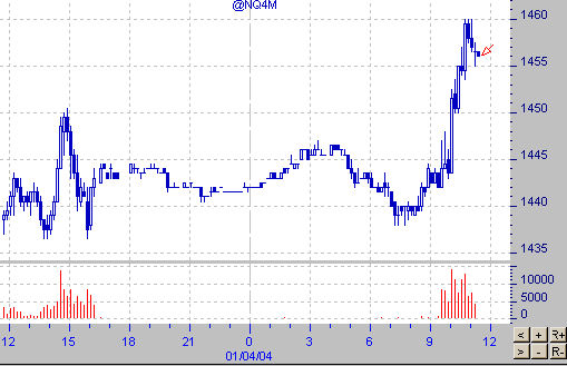 Ниже представлен 10-минутный график июньского фьючерса на Nasdaq 100