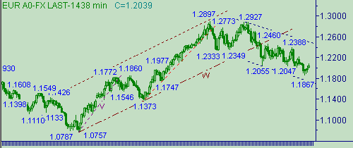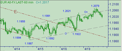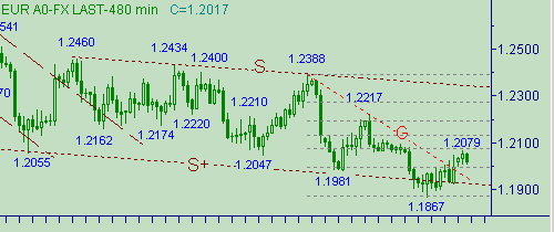 Получаем, что ближайший рубеж обороны у "Быков" находится на 1.2080, а у "Медведей" - интервал 1.1990-1.2020.