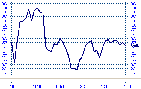 Акции ЮКОСа после сообщения о проведении выемки рухнули более чем на 10 рублем, ниже отметки в 370 рублей за акцию, однако к настоящему времени цены скорректировались вверх, поскольку за последние 8 сессий они потеряли более 80 рублей и дальнейшего желания падать у рынка пока не ощущается. Однако после некоторой консолидации падение, скорее всего, продолжится. Ближайшая цель расположена на уровне 337 рублей за акцию.