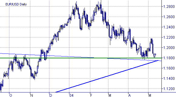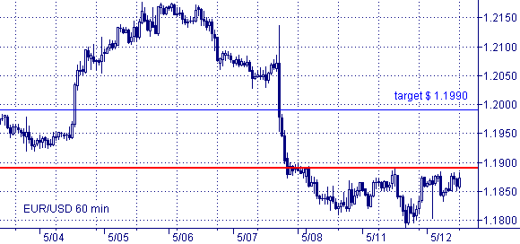 Евро слаб, поскольку находится вблизи линии аптренда с апреля 2002 г., которая сегодня проходит в районе $ 1.1737. Вероятность того, что медведи протестируют эту поддержку в поисках огромного количества стопов ниже нее, очень велика. Ее прорыв может привести к моментальному падению курса в районе $1.15. А пока мы видим на часовых графиках, что цены готовы скорректироваться выше, однако для начала им необходимо пробить линию шеи сформировавшейся разворотной фигуры "перевернутая голова и плечи". В этом случае цены могут подняться в район отметки $ 1.1990. Стоит также упоминуть, что существует пока очень слабый потенциал формирования разворотной модели "двойное дно" на дневных графиках.