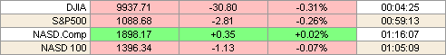 Американские акции упали в среду, поскольку возобновление беспокойств в отношении роста цен на нефть в самые последние часы торговли перевесили позитив от Hewlett-Packard Co. и перспектив доходов от IBM. И NASDAQ и Dow закрылись ниже своих психологических отметок 2000 и 10000 соответственно. "Рынок вновь последовательно реализовал продажи на фоне цен на нефть выше 40 долларов за баррель. Вчерашний рост был довольно слабым, да и то благодаря предшествующей значительной перепроданности", - сказал Брайен Пирс, Глава торговли акциями из Victory Capital Management. "Рост, который мы наблюдали внутри дня просто исчерпал себя", - сказал Тод Леоне, глава торговли акциями из S.G. Cowen. Высокие цены на нефть демпфируют прибыль и тормозят расходы потребителей. Фьючерсы на нефть на NYMEX завершили торги на уровне 41.50. Согласно сообщению трейдеров, увеличение складских бензиновых запасов на прошлой неделе оказалось недостаточным, чтобы снизить недостаток поставки этим летом.