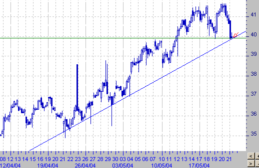 Цены на нефть находятся в стадии формирования разворотной модели "двойная вершина", что можно видеть на приведенном ниже часовом графике. Максимумы находятся на $ 41.65, а основание - немного ниже $ 40. Модель еще не сработала, поскольку ни основание, ни линия тренда не пробиты. Если это произойдет, первой целью снижения станут уровни около $ 38.20.