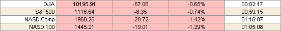 Мировой лидер по производству компьютерных микропроцессоров Intel после завершения торговой сессии в четверг планирует опубликовать собственный финансовый прогноз. Рост спроса на такую продукцию компании, как флэш-память и ноутбуки, не снизил беспокойства инвесторов, по этому в преддверии отчета акции Intel упали на 2.1% до 27.41. На фоне общего снижения, активную поддержку индексу Dow оказывали бумаги Wal-Mart Stores Inc. Крупнейший американский розничный продавец сообщил о существенном росте продаж в мае в своих магазинах, имеющих более года рабочего стажа. В цифрах увеличение продаж отразилось в росте на 5.9%. Акции компании укрепили свои позиции на 0.44% до отметки 56.60.