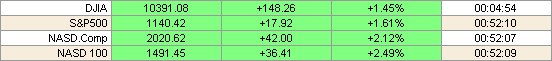 Американские акции совершили в понедельник значительное восходящее движение, поскольку снижение цен на нефть снизило опасения инвесторов в отношении одной из самых значительных угроз для американской экономики. После решения стран ОПЕК увеличить квоты добычи нефти, цены на NYMEX опустились ниже отметки 39 долларов за баррель. "Кажется, рынок уже учел все негативные факторы вместе с напряженностью на Ближнем Востоке", - высказал свое мнение Роберт Миккелсен, главный управляющий директор торговли на рыке акций из The Advest Group. Инвесторы "делают ставку" на технологические акции, полагая, что именно они окажутся в числе первых с точки зрения роста. "В контексте экономического роста мы можем выделить технологический, промышленный и сырьевой сектора. Технологический приковывает наибольшее количество внимания", - говорит Джон Кэлдвел, глава инвестиционной стратегии из McDonald Financial Group.