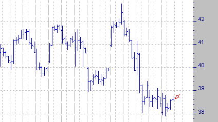 Ниже приведен часовой график фьючерсных контрактов на нефть марки Sweet Crude Oil.