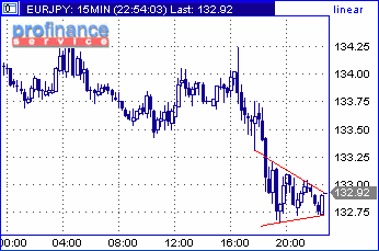 Курс доллар/йена базируется в завершении торгового дня в области 109.35. Объемы и активность торгов заметно снизились после стремительного нисходящего движения в этой паре, а также в кроссе евро/йена. "Бокал заполнен лишь на половину", - метафорически заявляют дилеры, имея в виду то, что укрепление йены даже в краткосрочной перспективе может продолжиться не менее интенсивно. Уровень сопротивления, где расположены ближайшие приказы на продажу, находится на 110.10/20. Техническая поддержка находится на 109.15 и представляет из себя значение скользящей средней линии. Техническое рассмотрение пары евро/йена позволяет выявить сформированный треугольник, внутри которого на данный момент находятся цены. Такая фигура, как известно, является продолжением движения, по этому, если будет пробита нижняя линия треугольника, то укрепление йены продолжится с новой силой, что окажет поддержку японской валюте и против доллара. В результате курс доллар/йена может стремительно достичь 108.50.
