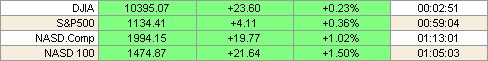 На NYSE, акции Morgan Stanley выросли на 1.8% до 52.15 после того, как крупнейший инвестиционный банк сообщил о более чем двукратном увеличении своих ежеквартальных доходов. Его конкурент Goldman Sachs Group также рапортовал о повышении своих прибылей, что позволило акциям Goldman подняться на 2% до 90.60.